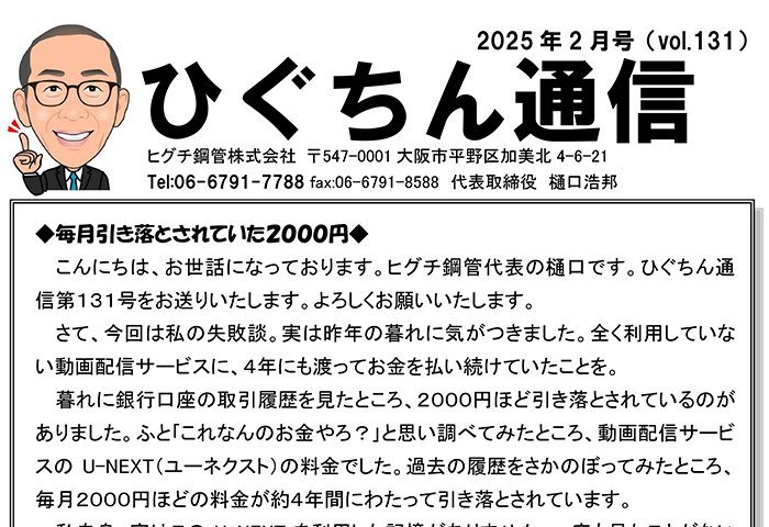 ひぐちん通信 ひぐちん通信 vol.131 を公開しました。 2025.02.13 ひぐちん通信 📄 PDFでご覧いただけます。 ひぐちん通信 vol.130 を公開しました。 前の記事 ひぐちん通信 vol.132 を公開しました。 次の記事 ひぐちん通信 vol.107 を公開しました。 2023.02.10