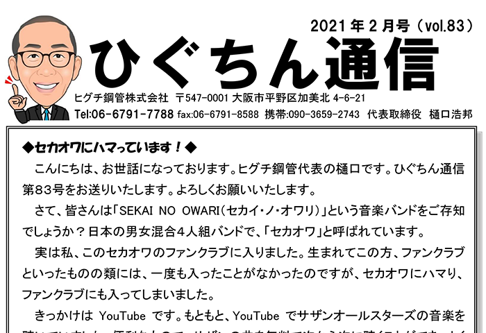 ひぐちん通信 ひぐちん通信 vol.83 を公開しました。 2021.02.09 ひぐちん通信 📄 PDFでご覧いただけます。 ひぐちん通信 vol.82 を公開しました。 前の記事 352-丸パイプの曲げ 次の記事 ひぐちん通信 vol.72 を公開しました。 2020.03.10