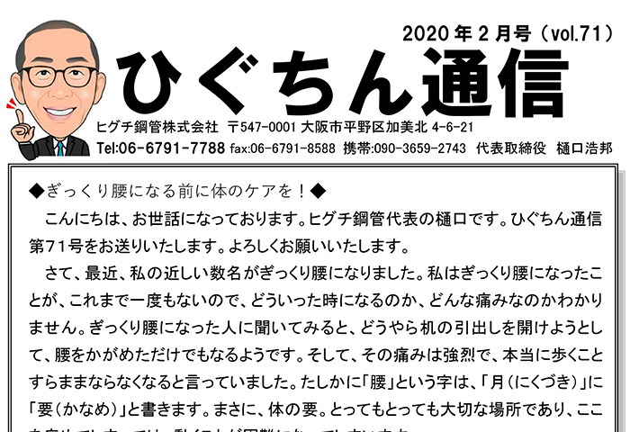 ひぐちん通信 ひぐちん通信 vol.71 を公開しました。 2020.03.10 ひぐちん通信 📄 PDFでご覧いただけます。 ひぐちん通信 vol.70 を公開しました。 前の記事 ひぐちん通信 vol.72 を公開しました。 次の記事 ひぐちん通信 vol.41 を公開しました。 2017.08.16