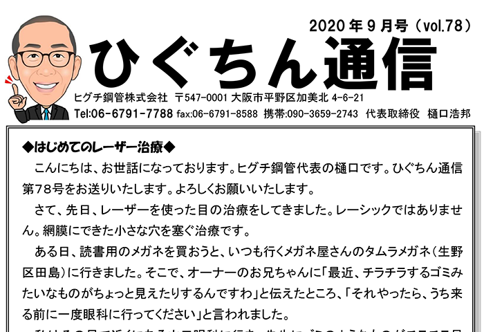 ひぐちん通信 ひぐちん通信 vol.78 を公開しました。 2020.09.08 ひぐちん通信 📄 PDFでご覧いただけます。 ひぐちん通信 vol.77 を公開しました。 前の記事 318-角パイプ切断 次の記事 ひぐちん通信 vol.79 を公開しました。 2020.10.28