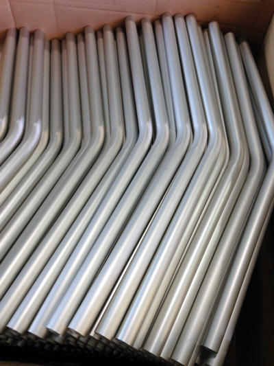 アルミ丸パイプ(アルマイト)の曲げ加工。3種計1546本の受注。
