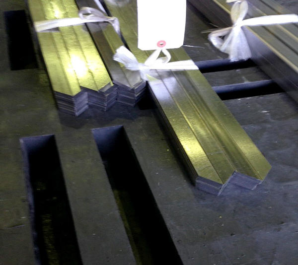 鉄・ミガキFB角度切り。メタルソーで切断しました。平鋼の角度切りも±0.5の公差で切断します。もっと厚いサイズや鋭角、鈍角切りにも対応致します。受注タイミングにもよりますがこのロットでしたら翌日お届け可能です。